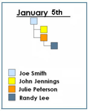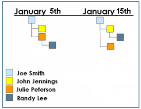 with a change in reporting structure during January. This example uses the same People and Positions described in A Versioning Example.