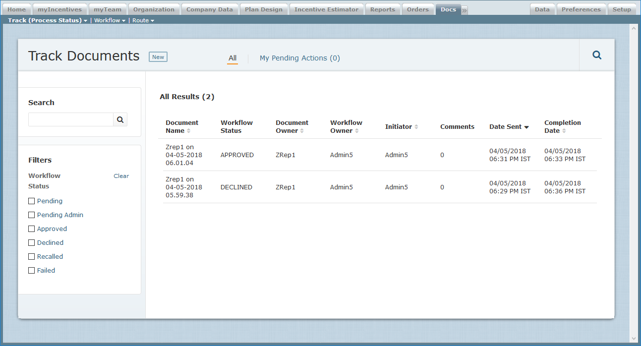 Xactly eDocs & Approvals 2018-04 provides administrators with early access to a new Track Documents page, which offers a cleaner, more intuitive version of the existing Process Status page.