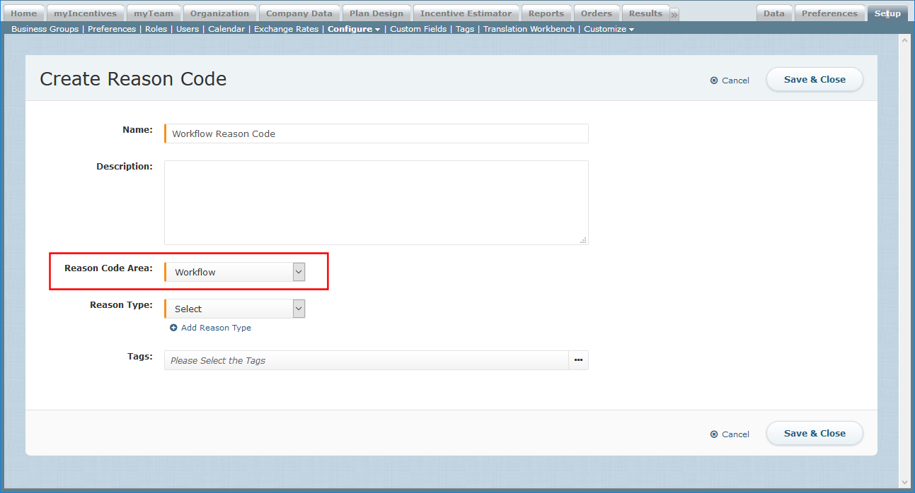 As part of this new capability, the release also updates the Setup > Configure > Reason Code area to allow administrators to define reason codes specifically for use with workflows.